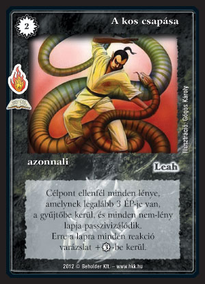 A kos csapása (6): Érdekes leszedés. Bizonyos pillanatokban hatalmas pusztítást tud végezni. Úgy érzem elsősorban lényes paklik ellen lesz valamennyire hasznos, hisz a nem-lény lapok passzivizálása nem elég az ingerküszöb megütéséhez. Mondjuk lényes paklik ellen se lesz mindig jó, hisz bizony nem mindig lesznek ennyire nagyok a lények, melyeket le akarunk szedni. Összességében inkább valami side-lap féleségnek tűnik, de annyira esetleges, hogy szerintem nem fogunk vele játszani.