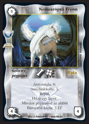 Nemesröptű Frynn (7): Faék egyszerű pegazus. Pegazus pakliba nyilván beraknám, de máshova már nem hinném. Nem befolyásolja eléggé a játékot, hogy igazán játszani akarjak vele.