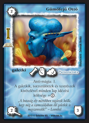 Gümőfejű Ottó (9): Amikor a galetkikkel játszottam, ebből a 3 lapból akartam minél többet látni az első körben: Rynthus (lehetőleg Lávaköpettel), Spóra és/vagy Gümőfejű Ottó. Galetki követővel (ugye nem kell mondanom, hogy azzal játszunk?) egyért jön, nehéz counterelni, dobat, drágítja az ellenfelet, és még valamit üt is, tökéletes. Jó, a torzszülötteket nem drágítja, de a mi Spóránkat sem. A játék későbbi részében, ha a drágítás már nem tűnik erős opciónak, a ködös képességével cserélhetjük pl. A helytartó csápjára (egyet vagy kettőt mindenképp javaslok abból is, nagyon durván mindent tud!).