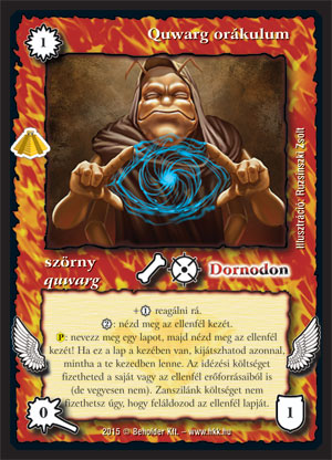 Ha a Quwarg orákulum képességének megnevezett lapból több is van az ellenfél kezében, akkor is csak az egyiket játszhatom ki. Ha ez a lap egy Plazmacsóva (új), akkor kijátszhatom úgy, hogy helyettesítem a költségét egy Dornodon lap eldobásával. Mivel a helyettesítésről nem rendelkezik a lap, ezért lehet helyettesíteni a választott lap költségét, de természetesen csak a saját erőforrásainkból, lapjainkból, életpontunkból stb.